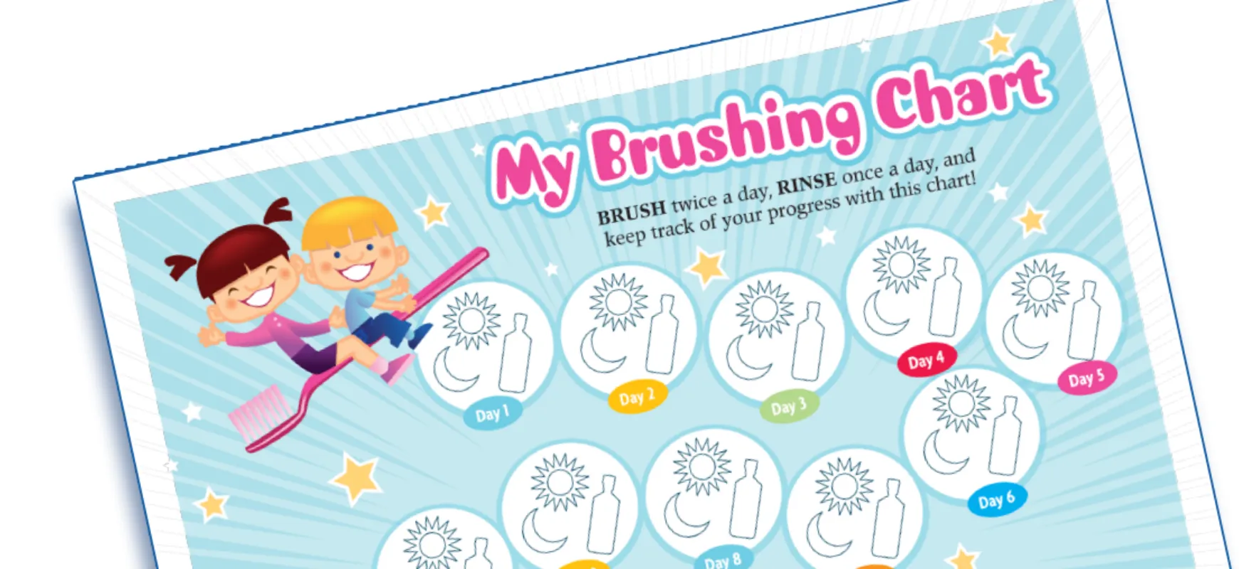 The ACT® Brushing Progress Chart helps children track their daily dental routine.