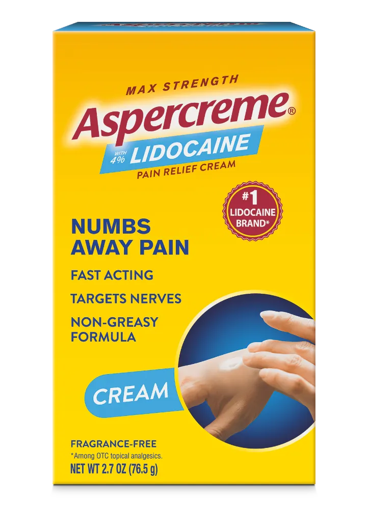 Aspercreme® offers a variety of targeted solutions to help relieve topical pain. Our Original Pain Relief Cream active ingredient is clinically proven to relieve joint pain. Aspercreme® with Lidocaine numbs pain away, and Aspercreme® Arthritis helps reduce inflammation.